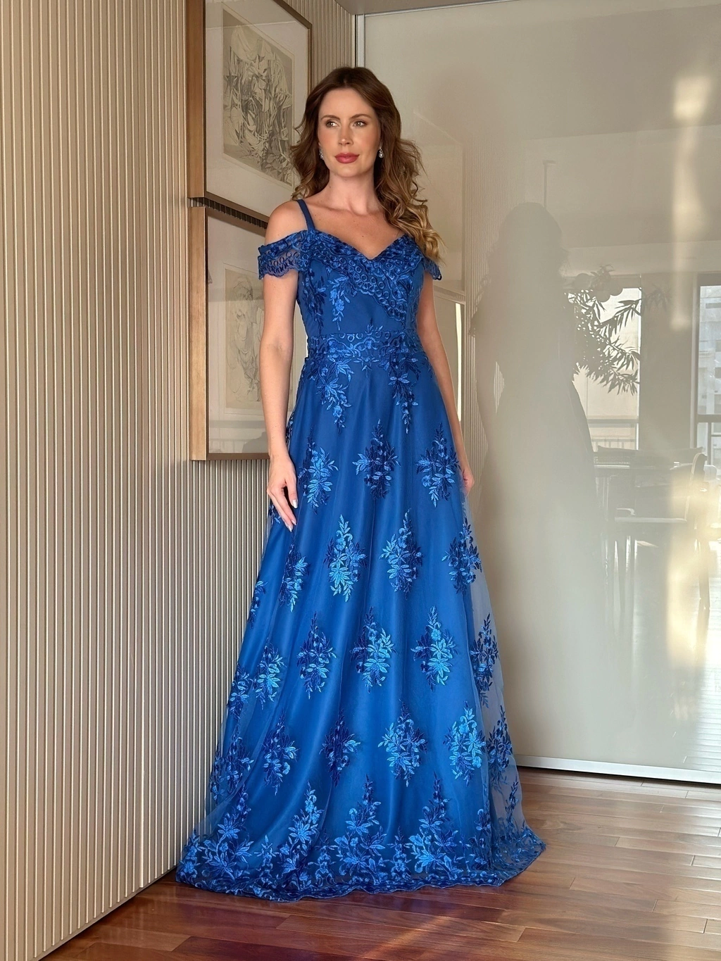 De modelagem ajustada no busto e cintura, com detalhes bordados por todo colo e ombros, o vestido Angélica é uma proposta romântica, delicada e muito elegante, ótima opção para mães de noivos (as), madrinhas de casamento e formandas. Seja em eventos diurnos ou noturnos!