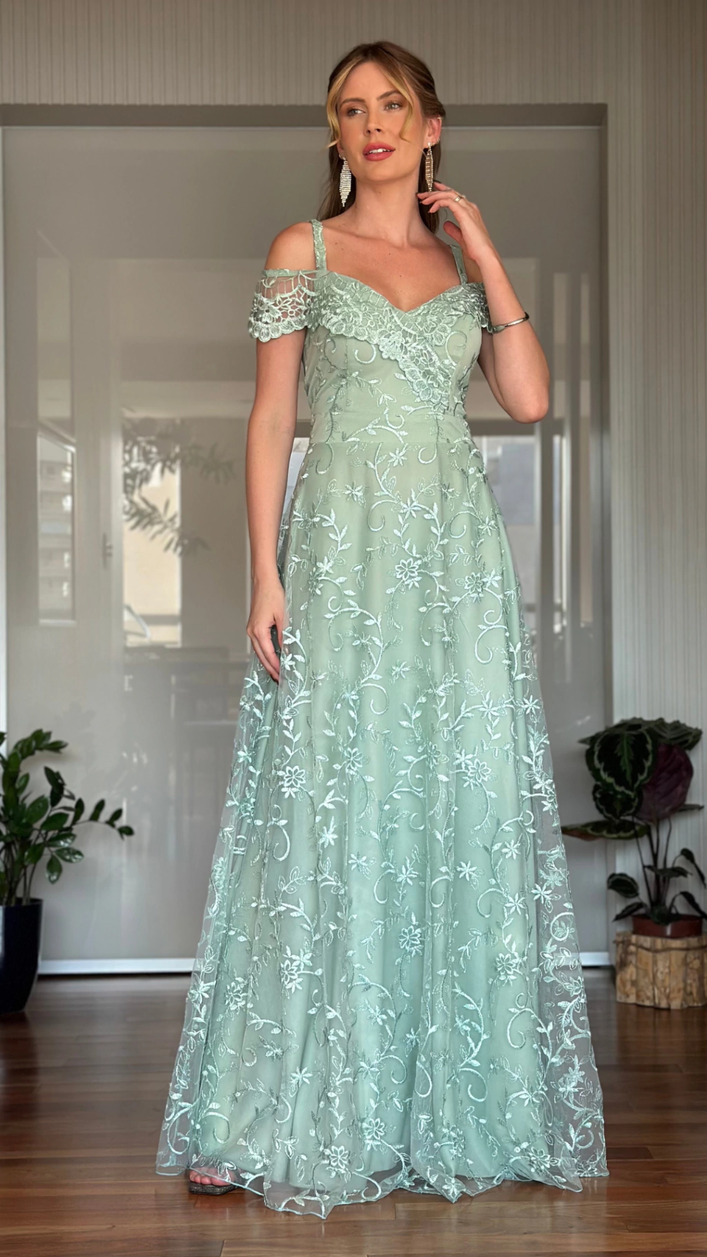 De modelagem ajustada no busto e cintura, com detalhes bordados por todo colo e ombros, o vestido Angélica é uma proposta romântica, delicada e muito elegante, ótima opção para mães de noivos (as), madrinhas de casamento e formandas. Seja em eventos diurnos ou noturnos!