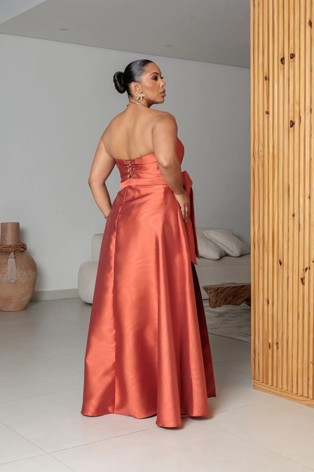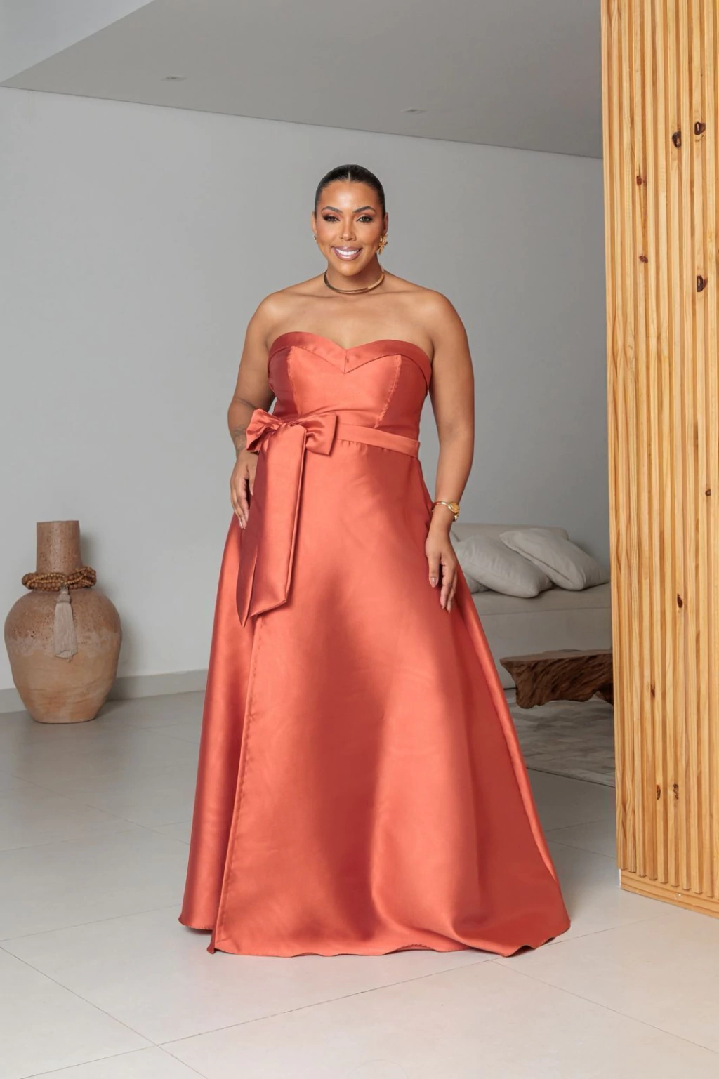 O vestido Dominique é um dos lancamentos mais esperados de 2025, todo feito em zibeline um tecido de alta qualidade e estruturado possui características únicas que remete glamour e sofisticação. O modelo confere um caimento impecável com detalhe especial de laço removível, enquanto a modelagem tomara que caia valoriza os ombros e a cintura marcada com trançado nas costas estilo corselet , realça as curvas de forma delicada atribuindo um toque feminino e moderno.